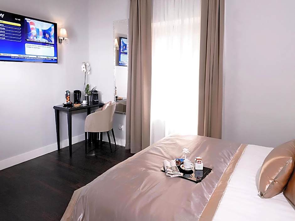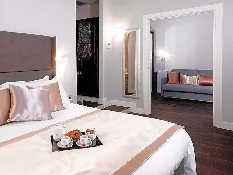 Piazza di Spagna Suite de Charme offers a diverse lineup of rooms to suit different travel styles. The Suite, King features a king-size bed, while the Suite Double Room includes a sofa bed for flexible sleeping. The Junior Suite spans about 280 square feet and accommodates 5 adults and 3 children. Other options include the Apartment 3 Room for two, the Deluxe for two adults and one child, and the Standard Room at 205 square feet that accommodates up to 10 adults and 6 children.
